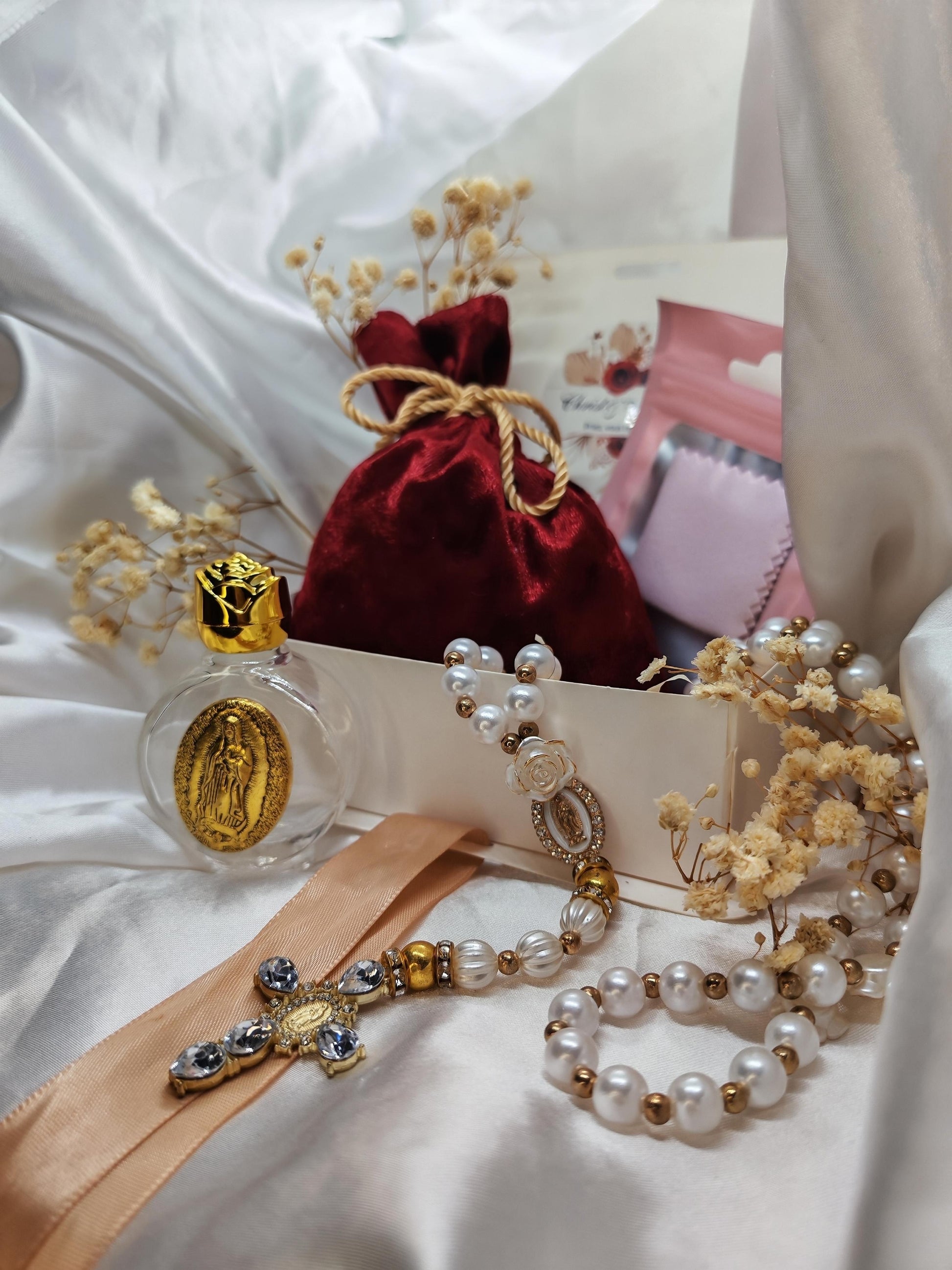 Petite par sa taille, mais grande par sa symbolique, la Baby Box Trésor est une délicate attention pensée pour les âmes en quête de foi, de douceur et de beauté. Elle réunit des éléments soigneusement choisis pour accompagner les moments de prière, de recueillement ou simplement pour offrir un geste empreint de spiritualité.
