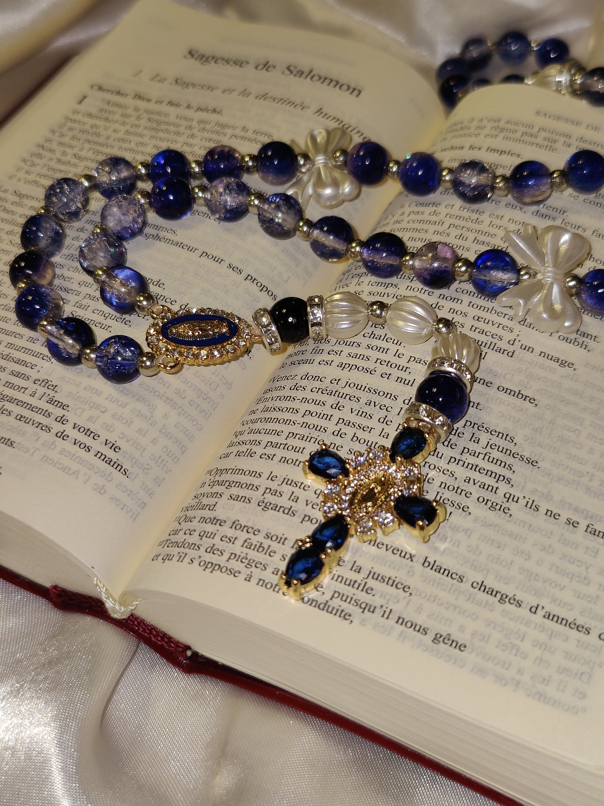 - Un chapelet présenté dans son écrin en velours, pour une touche de raffinement et de respect