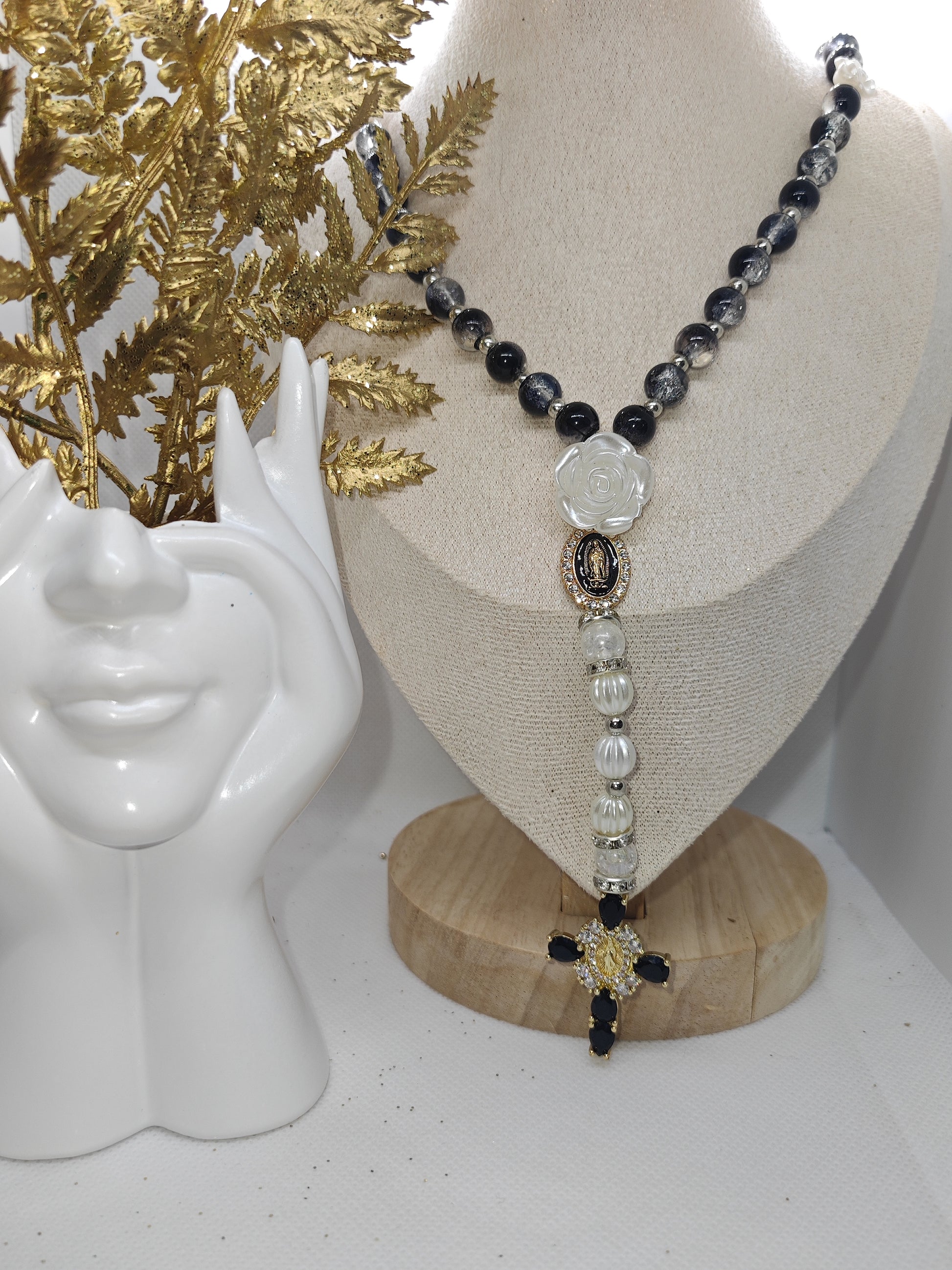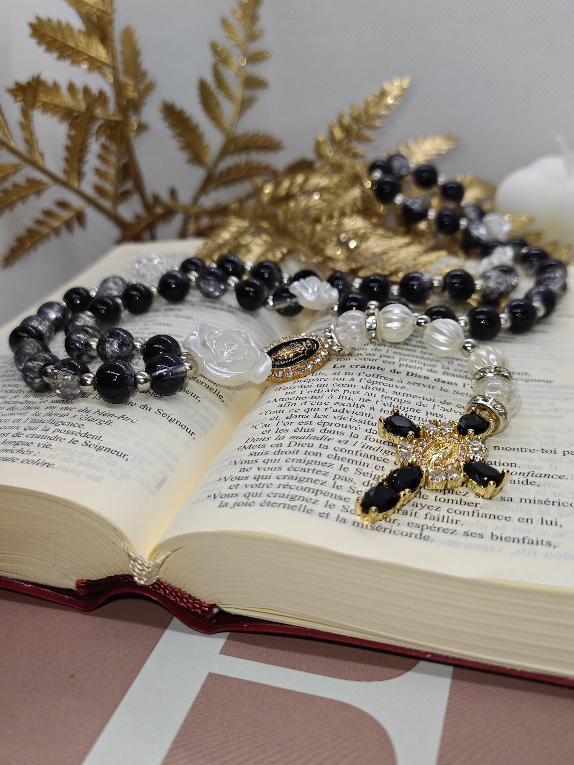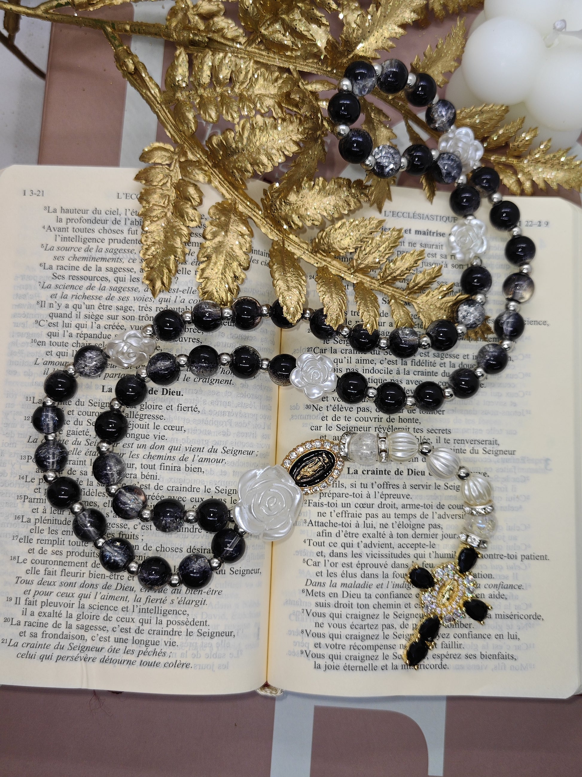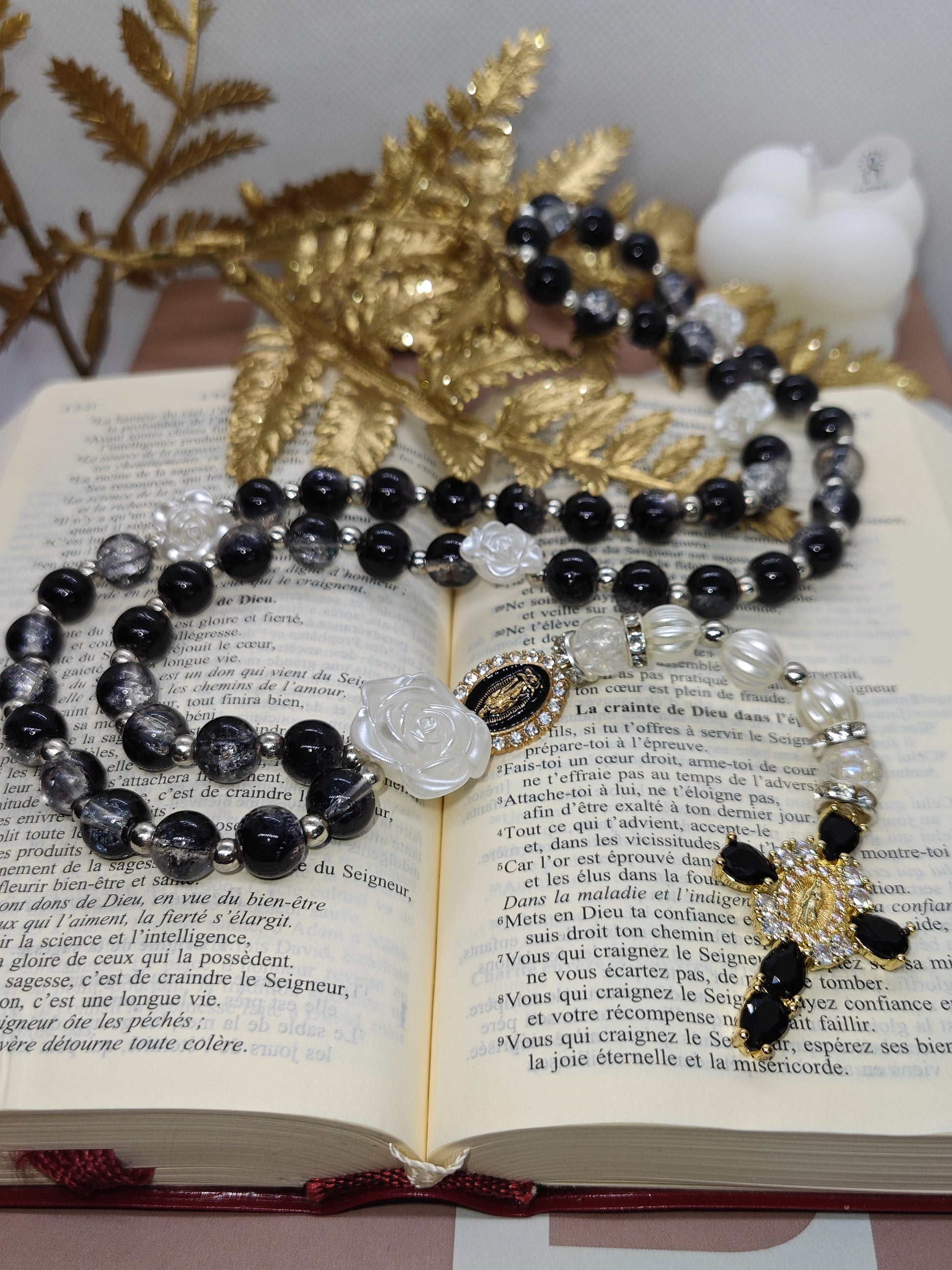 Le chapelet Grace est un symbole d'élégance et de recueillement. Sa teinte noire profonde évoque la force spirituelle et la méditation intérieure, offrant un moment de connexion et de sérénité. Confectionné avec soin et raffinement, ce chapelet artisanal accompagne chaque prière avec distinction et harmonie.