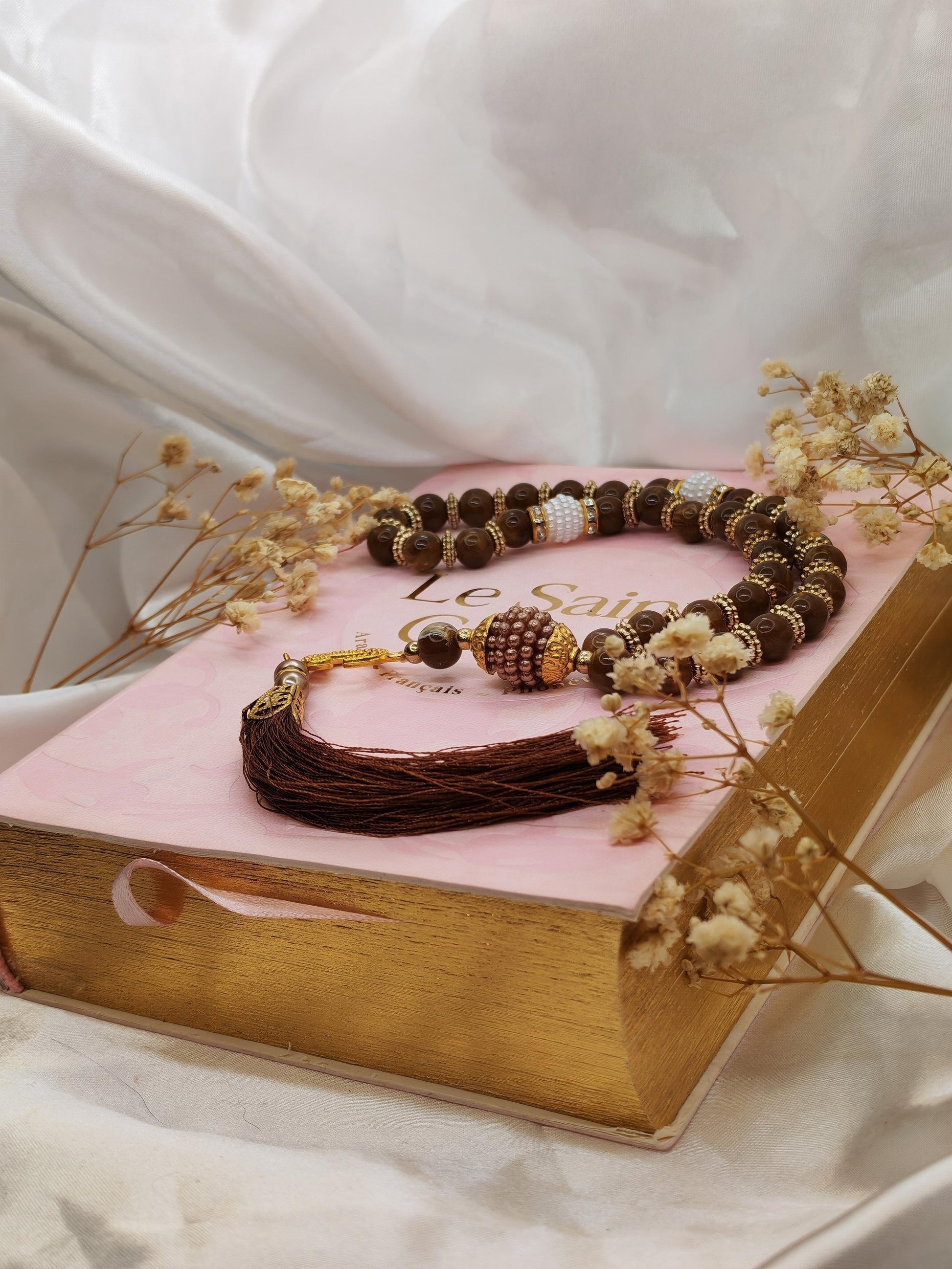 Ce Tasbih est bien plus qu’un simple bijou : c’est un compagnon spirituel, un lien discret et puissant entre le cœur et le divin. Conçu pour accompagner les séances de dhikr et les moments de prière profonde, ce bijou sacré invite à la sérénité, à la concentration et à l’élévation de l’âme.